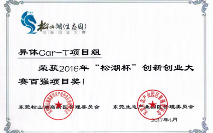 2016“松湖杯”創(chuàng )新創(chuàng )業(yè)大賽百強項目獎 -