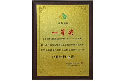 “贏(yíng)在東莞”創(chuàng )新創(chuàng )業(yè)大賽一等獎 -