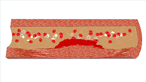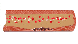 ▲ 血管壁損傷后,有形成分堆積在粗糙的受損組織表面